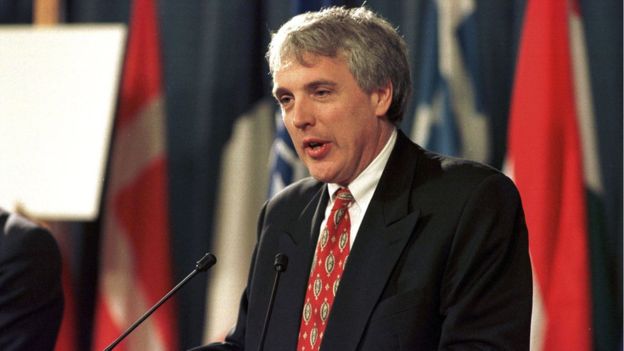 Џејми Шеј на радном месту – за говорницом портпарола НАТО-а, другог дана бомбардовања Југославије 1999. године (Фото: GETTY IMAGES)