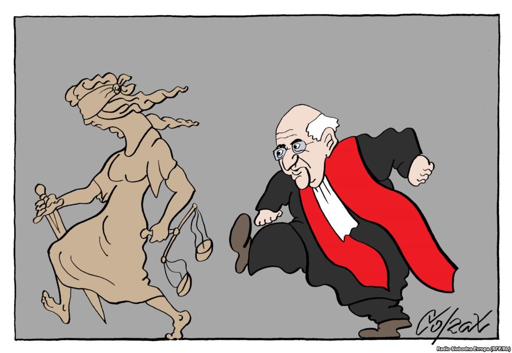 ”Пресуда” (Карикатура: Предраг Кораксић – Corax)