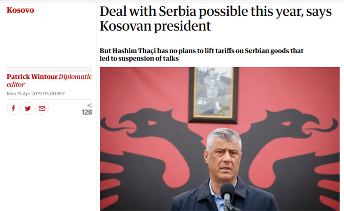 Председник тзв. Косова рекао за „Гардијан“ да нема планова да се укину таксе, али је нагласио потребу за брзим напретком