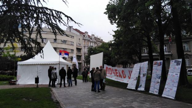 „Слободна зона“: Пионирски парк испред Председништва Србије (Фото: ФоНет/BBC)