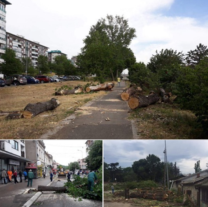 Прво сечење дрвећа због фамозне гондоле… Па онда на све стране и по Београду и по Србији. Пре неколико дана слали ми људи фотографије из Алексинца. Пустошење центра града.
