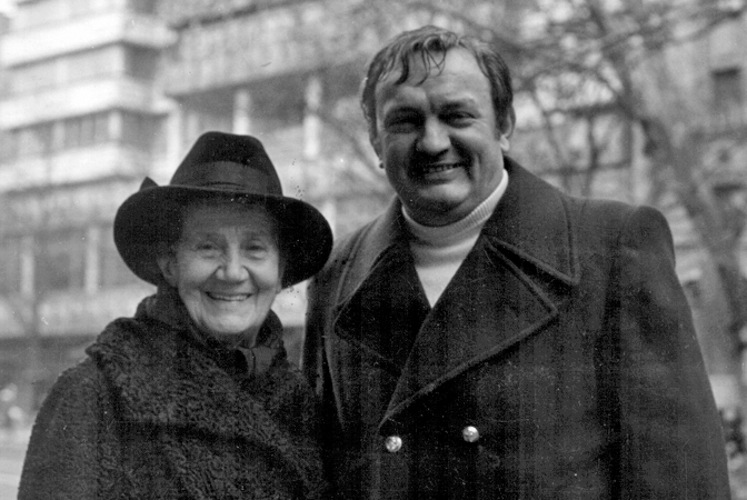 Са Десанком Максимовић испред Политике, 1986. (Фотодокументација Политике)
