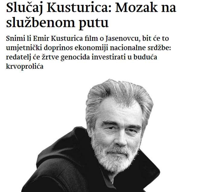 „Сними ли филм о Јасеновцу, бит ће то умјетнички допринос економији националне срџбе: редатељ ће жртве геноцида инвестирати у будућа крвопролића.“