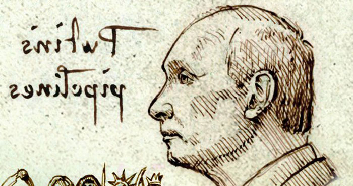 Испод Путиновог лика дата су четири јахача апокалипсе – бели коњ значи освајање, помор и долазак антихриста; црвени коњ значи рат; црни коњ је глад, а бледи коњ је смрт. Ко чита, да разуме.