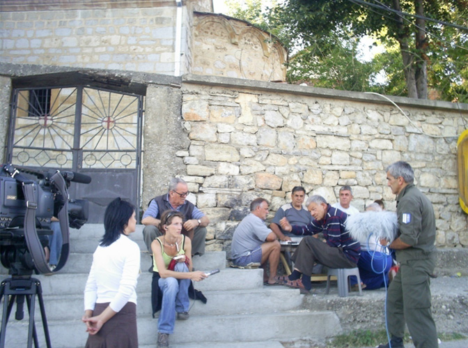 Аустријски новинари у разговору са групом наших суграђана испред ораховачке цркве
