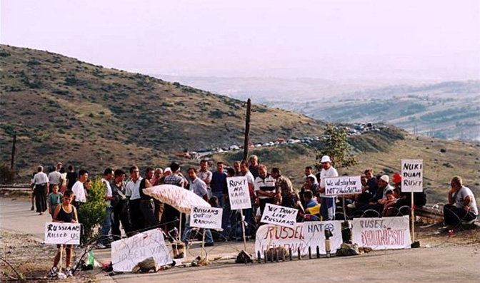Албанске барикаде на прилазу Ораховцу против доласка руских трупa