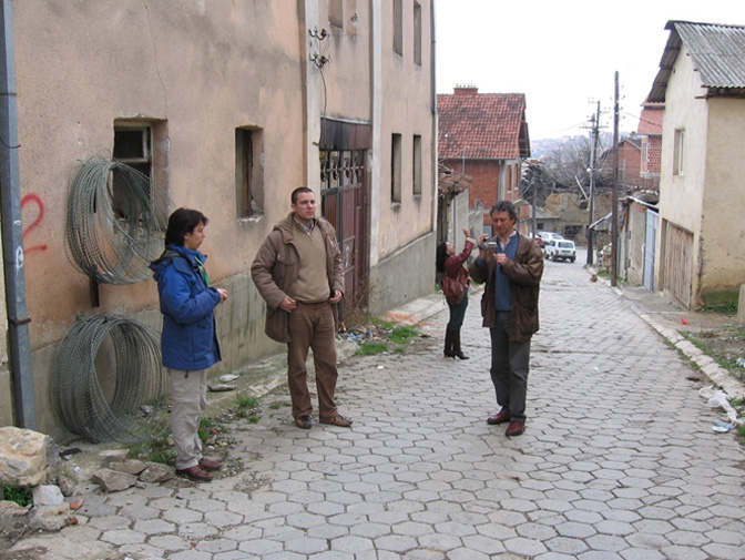 Група италијанских новинара на линији раздвајања српског и албанског дела града