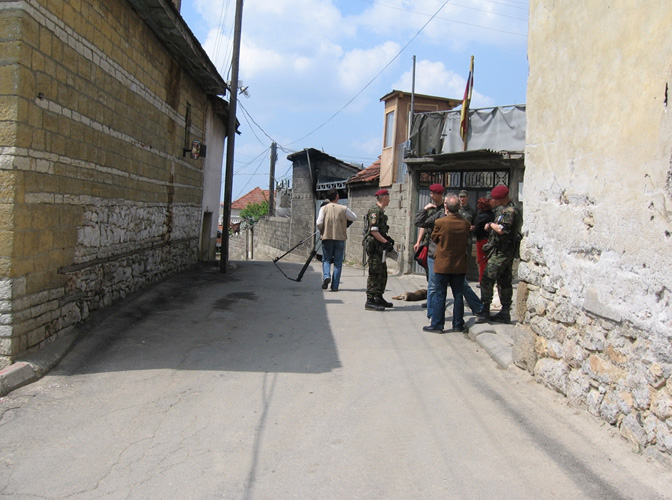 Прва тројица ухапшених Срба: Векослав Симић, Станко Левић и Анђелко Колашинац, у разговору са официром КФОР-а, неколико дана пре хапшења
