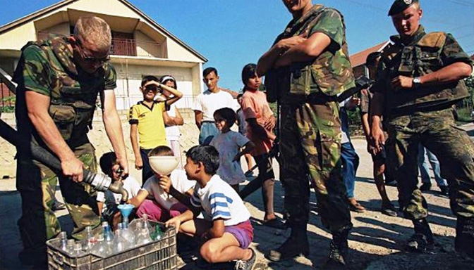 КФОР је био толико оптерећен Србима као ратним злочинцима да су његови војници патролирање кроз српски део града у почетку вршили под пуном ратном опремом, са пушкама на готовс и прстом на обарачу. При проласку патроле, задњи војник у колони би се кретао унатрашке, штитећи леђа патроли од „могућих напада Срба“. Међу војницима немачког а посебно холандског КФОР-а, било је припадника свих раса и националности, па чак и Албанаца. Холандски војници КФОР-а су нарочито били непријатељски расположени према Србима, због, како се претпоставља, лошег искуства са босанско-херцеговачким Србима у Сребреници. Међутим, треба истаћи да је међу војницима али и међу представницима других међународних организација на КиМ, било и добрих и поштених појединаца, који су савршено јасно схватали о чему се ради.