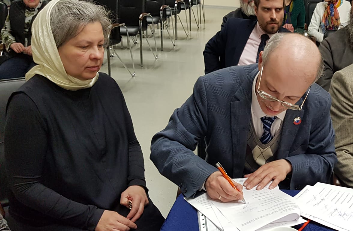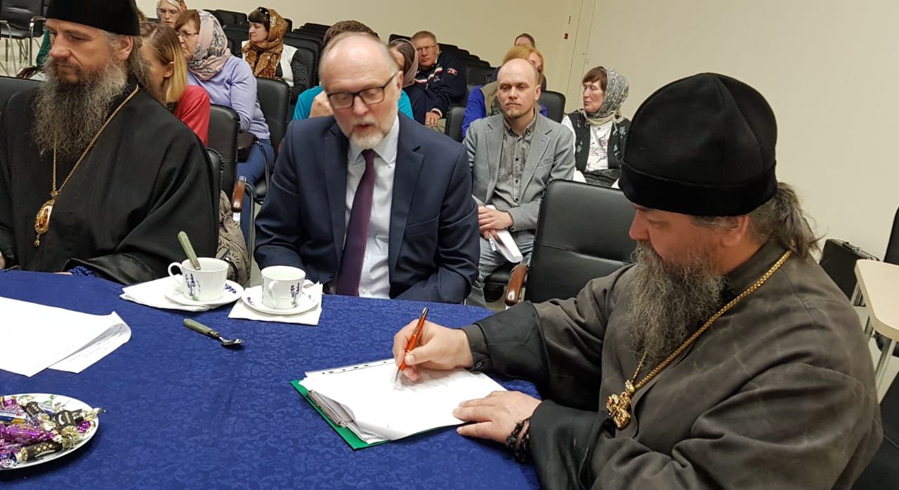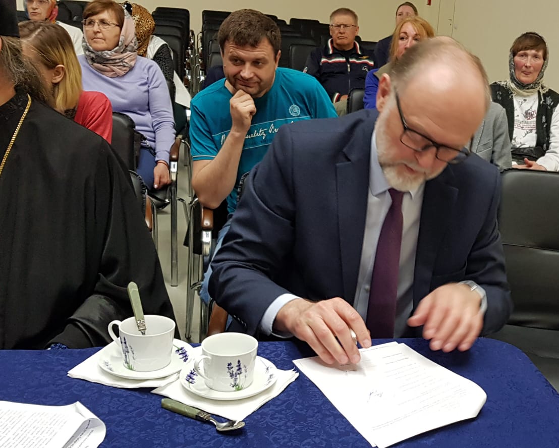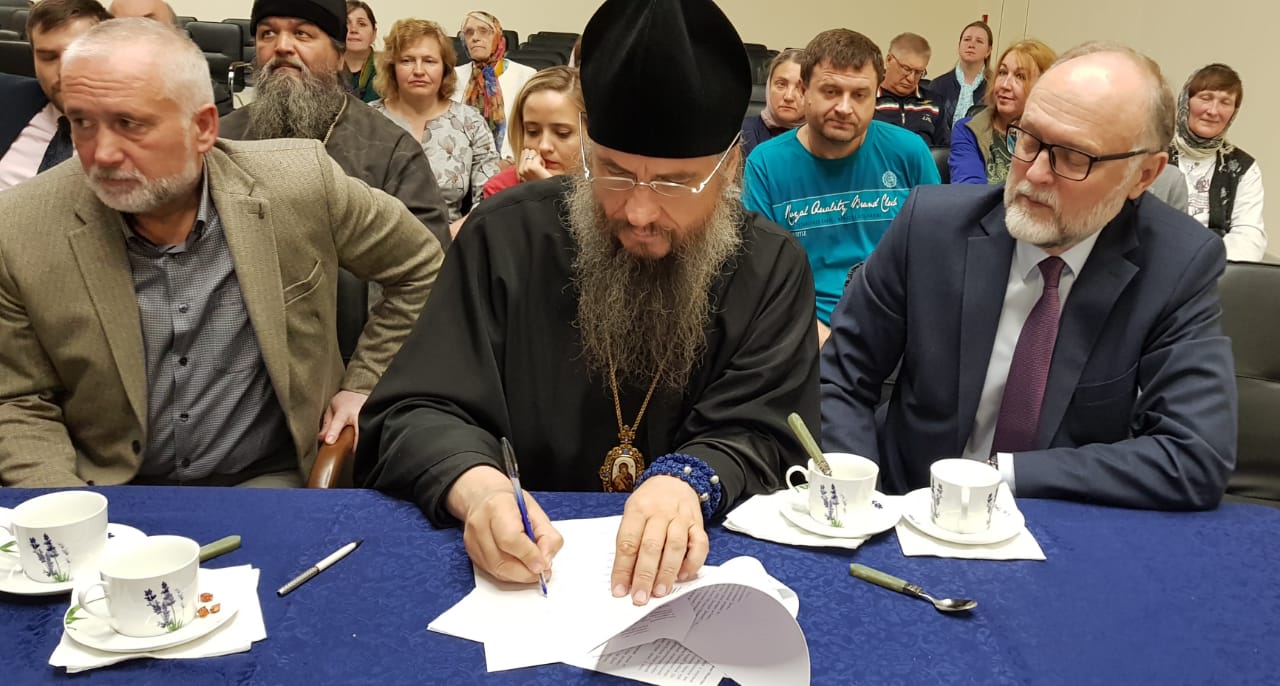 Игуман Никољског манастира у Саргатки, јеромонах Серафим, потписује оснивачки акт