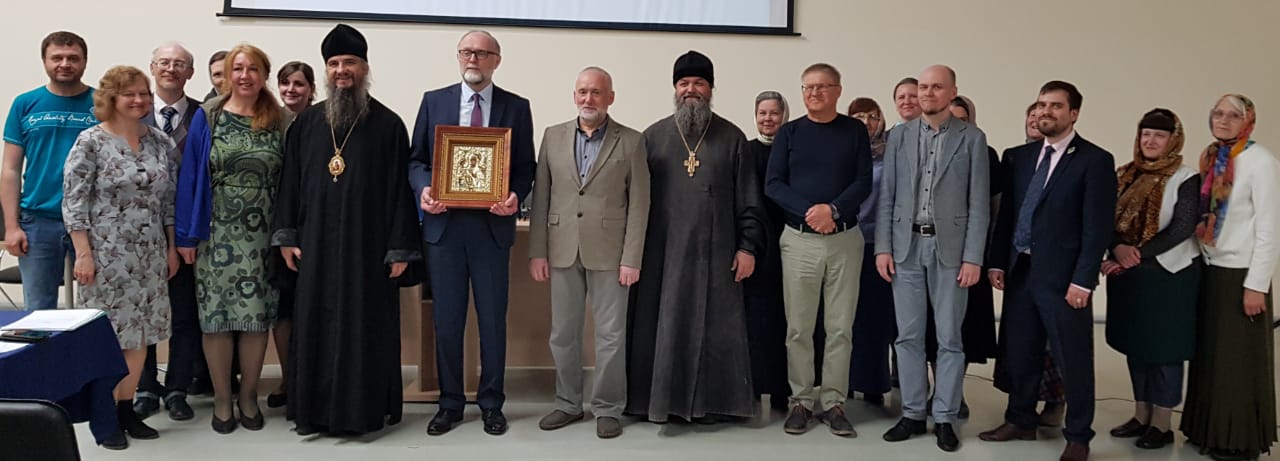 Желео бих да почнем са благодарношћу Вама, због тога што сте одлучили да се икона Тројеручица не враћа у манастир него да се упути у Сибир, где смо је ми сретали. Где год би последњих четири године говорили о тешкоћама, сваки пут се јављао посебан случај: сетили би се Србије, бринули за Србију, осећали њену блискост. И то је потпуно логично и схватљиво, јер Срби кажу „нас и Руса 200 милиона“, а без Руса…?“. Срби говоре и – „Ми никада нећемо одбацити Русе“. Због тога Срби Русе не одбацују. Миодраг Бајић је допутовао на плавом броду са иконом Тројеручицом. Потом су они стрпљиво обишли свако село које се налазило на обали Иртиша. На непрекидним крсним ходовима по беспућу, путовали су по селима. Ми смо се замислили, колико Срби брину за Русију, за њену духовност, за њену омладину. Следеће године допутовала нам је делегација са светињама освештаним на Светој Гори Атонској, у српском манастиру Хиландару. Цела Тарска и Омска епархија поклониле су се светињама, јачајући у вери. Управо сте Ви оче Симеоне благословили да нам Ранко Гојковић са својим братом донесе икону Пресвете Богородице Тројеручице. Прво су прошли Царским путем, потом вођени Духом, по Иртишу куда је још као царевић пловио свети Цар Николај. Када се завршио Крсни ход „Тројеручице“ – Ранко Гојковић је на сцени Дома културе у Саргатки рекао да треба размишљати о сарадњи, о народној дипломатији, поменуо је епископе, благослов Српског Патријарха за своје путовање, истакавши да је неопходно развијати народну дипломатију становника Сибира и Србије. Икона је већ овде, Тројеручица је већ ту – главни део Србије је већ овде. И шта ми размишљамо? То је благослов Божије Мајке. Но, Саргатка не само да је знала за Србију, него је душа болела када су бомбардовали Београд, кад је био рат. Управо је у Саргатки игуман Серафим позвао децу из Србије, из Свете Српске Земље Косова и Метохије, која је највише пострадала. Деца су стигла у Саргатку и овде одмарала. Видне су биле њихове молитве, молитве деце. Видећи састрадавање, Пресвета Богородица је благословила, ми Српско присуство у Сибиру доживљавамо као благослов. Са задивљеношћу, са благословом клирика СПЦ, Срба. Са поуздањем у Бога у близини иконе Тројеручице. Одмах по доласку светиње, отворили смо подворје посвећено Тројеручици у Саргатском рејону. Људмила Викторовна је, надам се на нашу заједничку добробит, постала старија сестра подворја иконе Тројеручице. Ето, то је оно што нам је од Бога дато. А циљеве и задатке друштва боље ће формулисати научници. Ми немамо важнијег циља од уласка у Царство Небеско, то да би наша Отаџбина била Небеска Отаџбина. Ми пред целим светом бранимо славу Отаџбине Небеске. У томе смо јединствени. И велико растојање не разједињује, него обједињује. Свима желимо достојну улогу, општење једних с другима у љубави. Љубав је жртва. За подвиг је спреман онај који није навикао да живи само за себе, у томе нам и православни Срби показују добар пример, у том смислу и пример Ранка Гојковића. Због тога молим да се сагласите да се створи заједничко друштво сарадње и пријатељства.