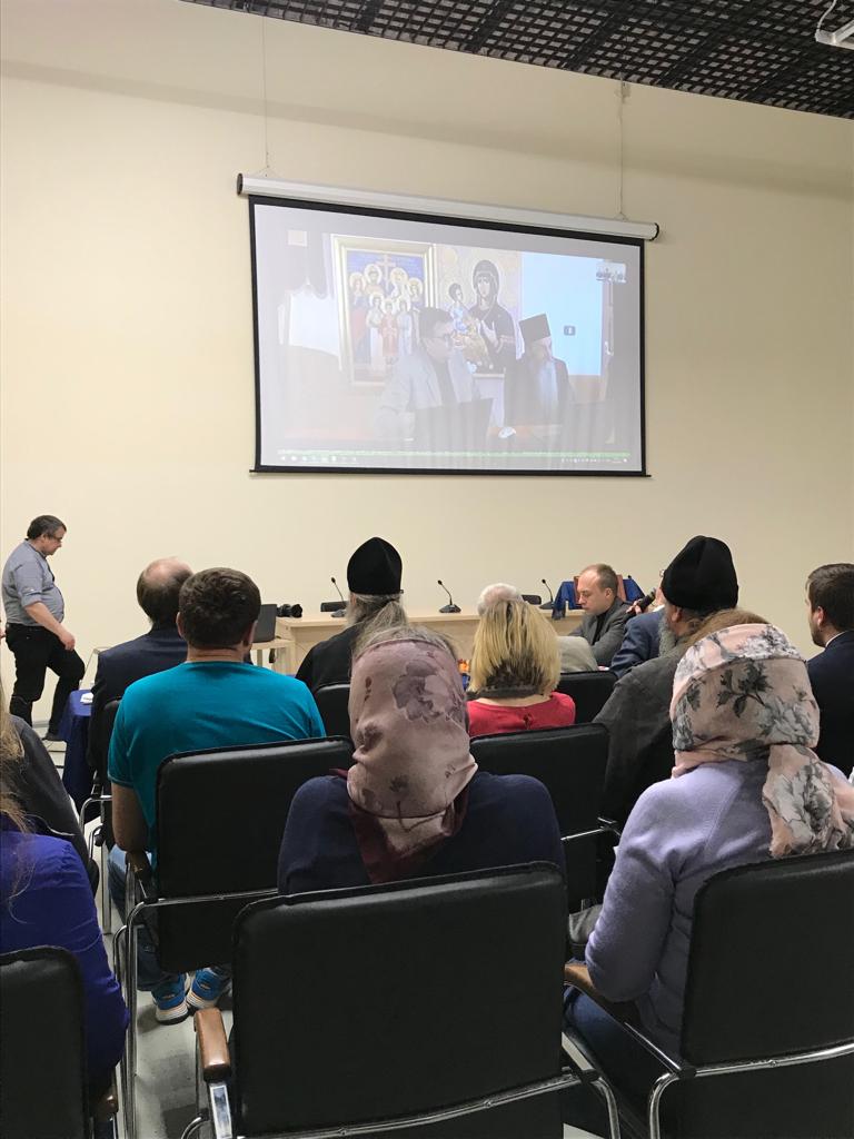 На видео-биму, обраћање игумана Симеона и Ранка Гојковића оснивачима друштва „Сербирија“
