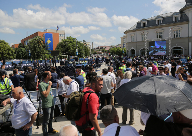 Како јављају дописници Спутњика са лица места, прилази Приштини нису одавали утисак да се дешава нешто важно. Међутим, када се стигне у центар, од Булевара Била Клинтона до Булевара Мајке Терезе до Скендербеговог трга, све је блокирано. Трг је уређен тако да су столице постављене у облику амблема НАТО-а.
