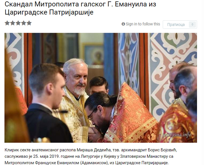 [2] Прим. СС: У српским медијима стоји да је „архимандрит Борис“ саслуживао на литургији крајем маја (25. 5. 2019).