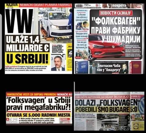Најаве „сигурног“ доласка Фолксвагена у Србију (Извор: Фејсбук)