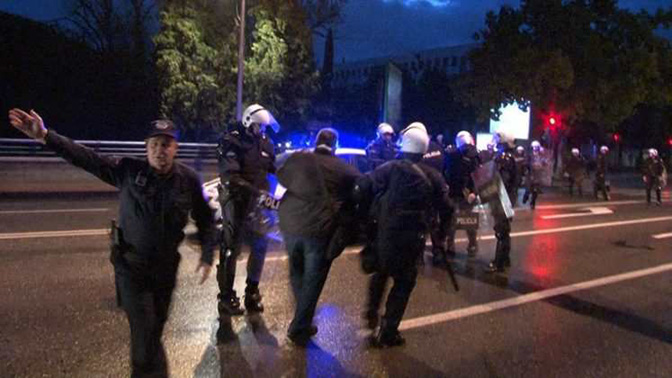 Хапшење главног уредника ИН4С Гојка Раичевића, док је радио свој посао и извјештавао са протеста (Фото: ИН4С)