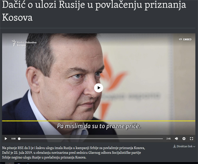 Потпредседник Владе и министар спољних послова Србије Ивица Дачић негира улогу Русије у повлачењу признања Косова. На питање РСЕ да ли је и какву улогу имала Русија у кампањи Србије за повлачење признања Косова, Дачић је 22. јула 2019. у обраћању новинарима пред седницу Главног одбора Социјалистичке партије Србије, чији је председник, изјавио: