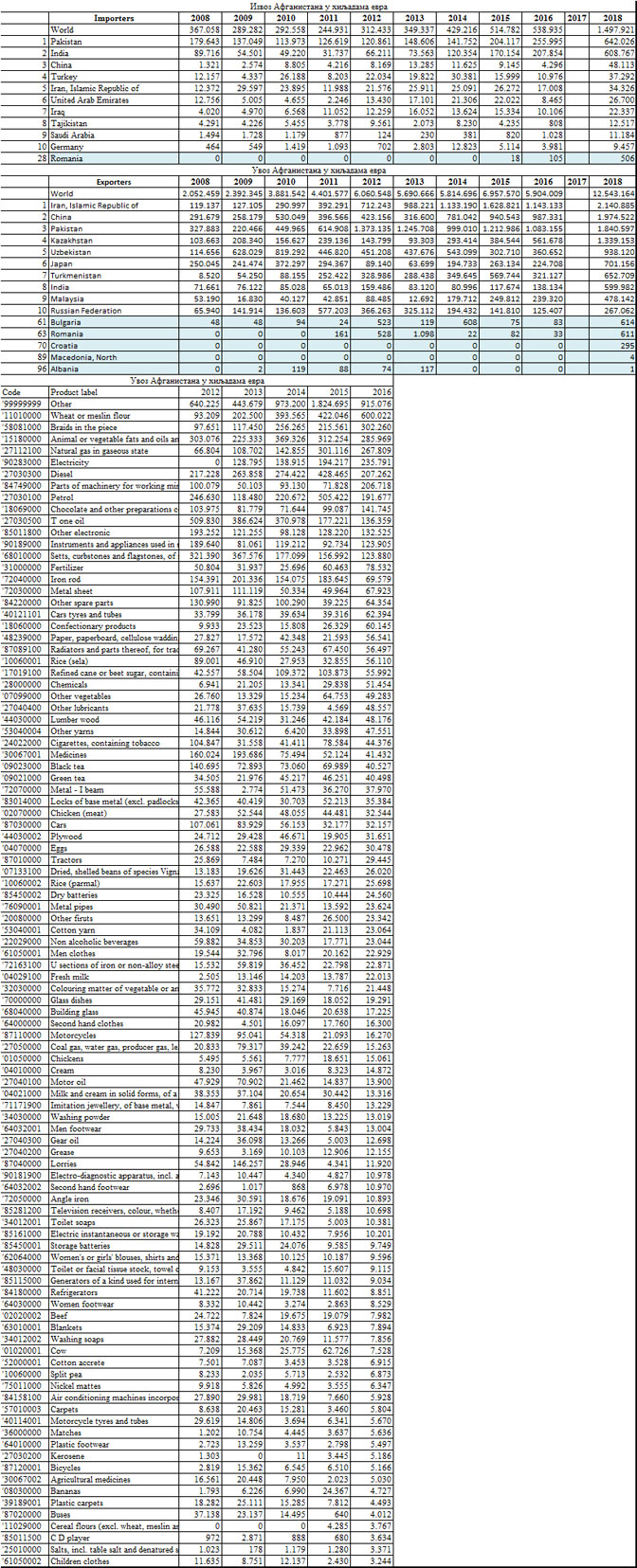 Авганистанска спољна трговина (Табела: Макроекономија)