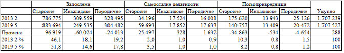 У односу на фебруар 2013 дошло је до промена у структури пензионера: смањен је број инвалидских и породичних пензија запослених а повећан је број старосних. Код самосталних делатности повећан је број пензионера свих категорија а код пољопривредних је смањен у свим категоријама.