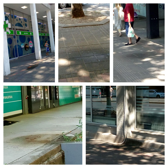 Баре које се праве док кампље вода са клима уређаја – Булевар краља Александра на Лиону – исто је свуда по граду па и у самом центру; Баре испред улаза у приватни Дом здравља и државну Пошту на Лиону (Фото: Никола Варафић