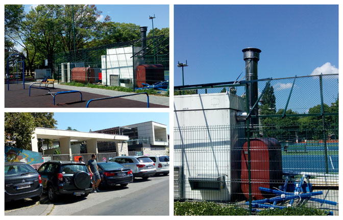Чесма која не ради; поломљена справа; Зимус склоњене справе са друге стране стазе још нису враћене; Справа за вежбу пропадање, друга шимпа однета и није враћена цело (у правцу казаљке на сату) Фото: Никола Варагић, 21. август 2019
