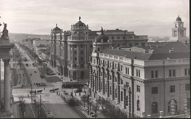 Сваки човек зна чудеса, тајне и игре своје улице, чак и свога плочника. Зар машина да је дивна београдска улица Милоша Великог, тај гипки обешени мост који једним исцелим таласом пребацује људе онамо у поља и шуме, а тамо у гробље. Раскршће улица Милоша Великог и Немањине, то је, у мразну вечер, врело жут обзор, испродеван црним челичним жицама и дрхтав од светлих поља и чворова. Испод тога је улица хлоротично лепа, пуна млечних бледоћа и светлуцавих покретних прашиница. И непомична је као платно на које је пала тешка уљана слика. Пут који се занео.