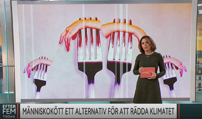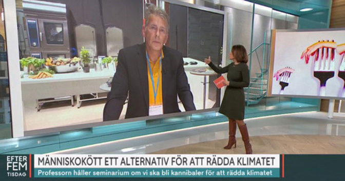 Гостујући на шведској телевизији, како би говорио о догађају који се бави темом „храна будућности“, Магнус Зедерлунд (Magnus Söderlund) рекао je да ће одржати предавања о нужности конзумирања људског меса како би се зауставиле климатске промене.