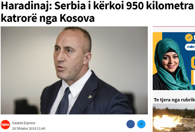 Вршилац дужности премијера Рамуш Харадинај открио је први пут колико је територије Косова затражила Србија.