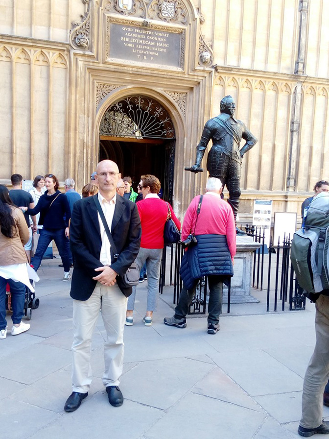 Миша Ђурковић испред Бодлеинове библиотеке (Фото: Фејсбук/Институт за европске студије)