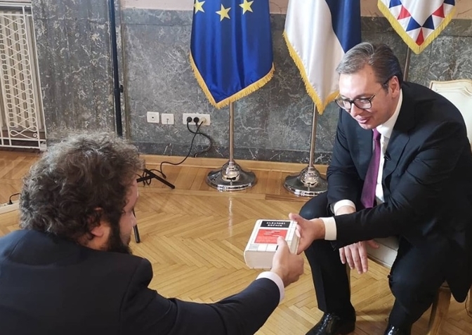 Идро Сефери поклања албанско-српски речник Александару Вучићу (Фото: Србија Данас)
