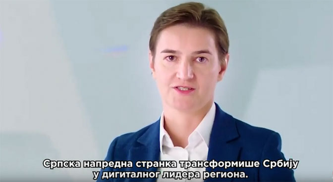 Српска напредна странка објавила је данас нови спот „Дигитална будућност Србије”, а овог пута у главној улози је премијерка Ана Брнабић.