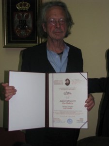Петер Хандке на свечаности пријема Дисове плакете (Фото: Градска библиотека Владислав Петковић Дис – Чачак)