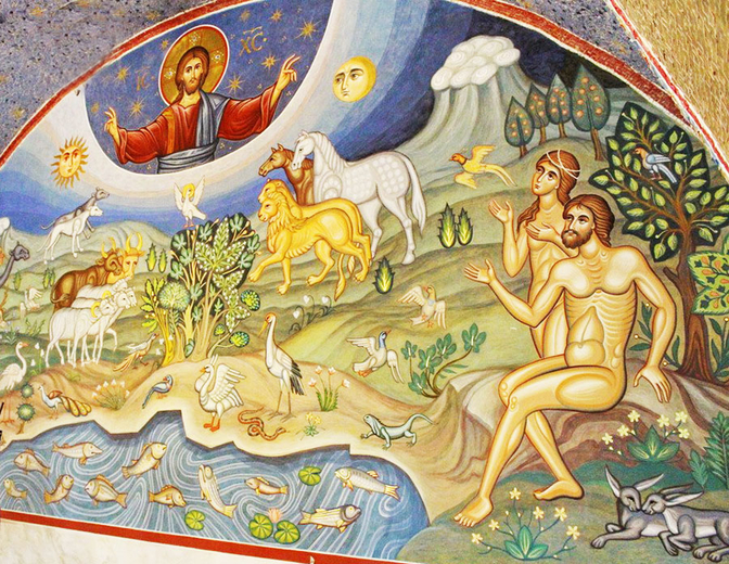 Адам именује животиње, фреска у Манастиру Николе Анапавског, Метеори у Грчкој (Фото: Православие.ру)