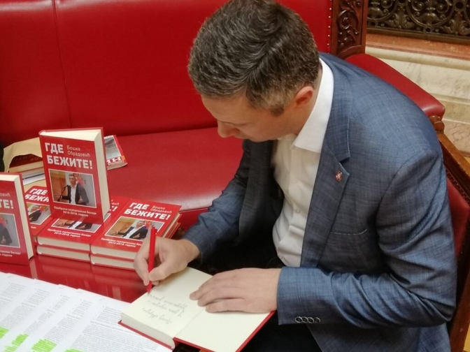 Бошко Обрадовић потписује књигу Где бежите (Фото: Двери)