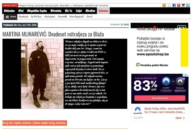 За то вријеме прича око Мартине Млинаревић Сопте постаје све занимљивија. Наиме, Комшићева неквалификована амбасадорка прошла је занимљив пут, од залагања за трећи ентитет до фине грађанске опције, а у међувремену је писала оде непресуђеном злочинцу Блажу Краљевићу.