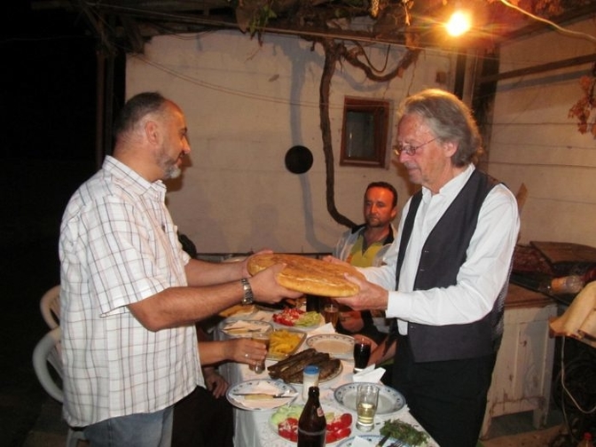 Петар Хандке са својим пријатељима Србима из Ораховца и Велике Хоче