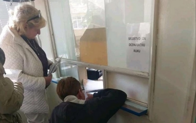 Шалтер у Суботичкој болници, који је због специфичног положаја у односу на висину странака изазвао доста полемика на друштвеним мрежама 2018. (Фото: Саша Боројевић/Твитер)