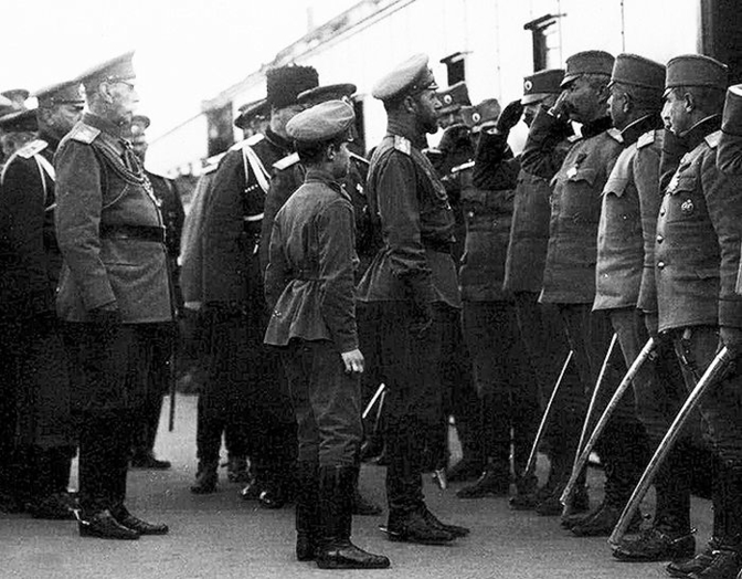 Али убрзо се напредовање наше војске зауставило, а губици су почели да расту. У јавним врховима, како у главном штабу, тако и у главном граду, почели су немири. Неуспехе на фронтовима су искористили револуционари, окренувши своју пропаганду на фронту и у залеђу. Немци су се брзо пробијали до центра Русије; у тим условима, желећи да војсци подигне дух, господар је преузео на себе врховну команду и прешао је у штаб, који се налазио у Могиљеву. Са њим на фронт је изашао и царевић Алексеј. Међутим, искористивши одсутност цара у главном граду, опозициона аристократија је ојачала своју активност. На двору се разговарало о изводљивости држаног удара са устоличењем на трон Великог кнеза Николаја Николајевича. Опозиција је убеђивала да на путу победе Русије у рату стоје цар и царица; Николај Николајевич је послао господару телеграм у којем га је молио да се одрекне престола. Сличне телеграме послала је већина командних фронтова. И када се у фебруару 1917. године десила револуција, царско друштво је заузело страну привремене владе. Цара су почели уверавати да ће само његово одрицање од престола спасити Русију. И господар је пред лицем издаје жртвовао себе и услишио њихову молбу. После ноћне усрдне молитве пред иконом он се одрекао престола; то се десило 2. марта. „Не постоји та жртва коју не би принео зарад истинског добра и спасења Русије. Стога сам спреман одрећи се престола“, – такав телеграм је дао председавајућем Народне скупштине.
