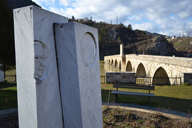 Обновљени споменик Иви Андрићу (Фото: Сајт Туристичке организације Вишеград)