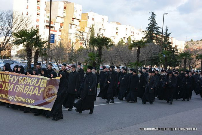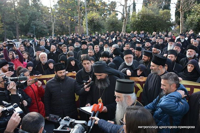 Пред Скупштином Црне Горе одржан је протестни скуп свештенства и монаштва Митрополије црногорско-приморске и Епархије будимљанско-никшићке поводом почетка парламентарног заседања на којем владајућа већина намерава да усвоји дискриминаторски закон о слободи вероисповести.