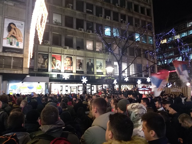 Протест испред Амбасаде Црне Горе у Београду, 27. 12. 2019. (Фото: Стање ствари)