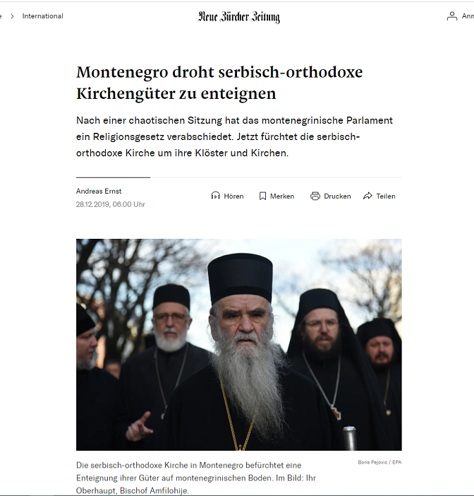 Швајцарски дневник Ноје Цирих цајтунг (Neue Zürcher Zeitung) је најдаље отишао у доследном објашњењу чињеничног стања и интерпретацији црногорског Закона о религији.