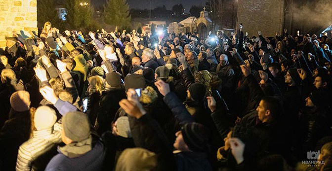Испред цркве Светог Петра и Павла у Бијелом Пољу 1. јануара 2019. године окупио се велики број људи. Литију предводи Владика будимљанско-никшићки Јоаникије. Окупљени народ протестује због усвајања Закона о слободи вероисповести у Црној Гори.
