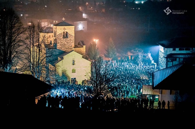 Окупљање око цркве у Беранама, 4. 1. (Фото: Лука Нововић/Сајт Митрополије црногорско-приморске)
