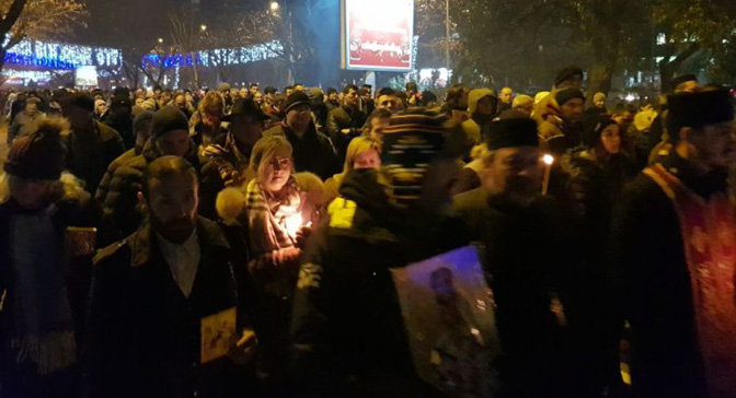Православни верници у Црној Гори молитвеним шетњама и вечерас протестују против контроверзног Закона о слободи вероисповести. У Подгорици је кренула литија око 19 часова, пошто је у 18 часова одржан молебан.