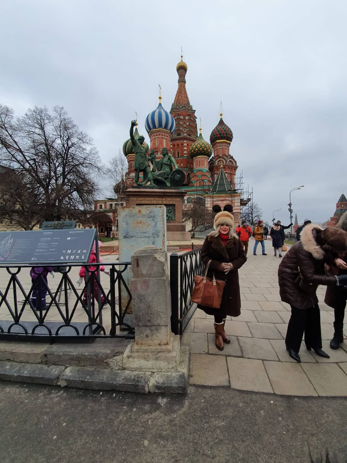 Слетели смо мало пре поноћи 28. децембра. Москва, иначе величанствена, дочекала нас је спектакуларно окићена, украшена за дочек Нове 2020. године. Ујутро, које овде не значи и зору (она мало касни), долази Јулија, наш водич. Она је Рускиња. Права. Лепа и родољубива. Српски говори без акцента. Каже, учила га је у београдским кафанама и сплавовима. Води нас прво на Црвени трг. А где би друго?! Он сада не изгледа као на репортажама, ни налик ономе са снимака Војне параде. Препун је маштовитих украса у духу руске традиције. Шире се примамљиви мириси куваног вина, чајева, пирошки и палачинки. Чује се музика са клизалишта и изнад свега, сија поносан и величанствен Храм Василија Блаженог, најлепша црква на свету! Десет прелепих купола заправо представљају 10 одвојених малих цркви. Василијева је најмања, последња направљена, али његово присуство је живо, успомена на њега остала је сачувана до данас, и тако је цео Храм преузео име овог свеца, иако је првобитно назван Покровски Сабор. Лепоту овог храма, његови градитељи платили су својим видом, да више никада не би направили нешто тако савршено.