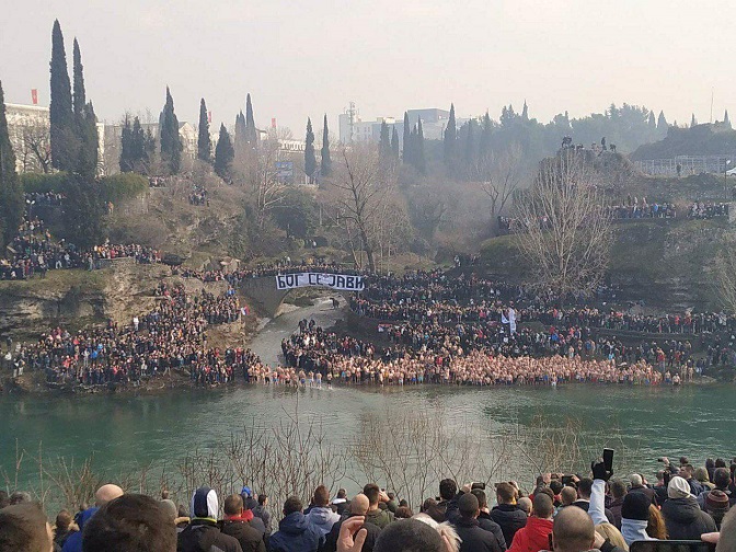 Богојављење у Подгорици – освештење воде и пливање за часни крст (Фото: ИН4С)
