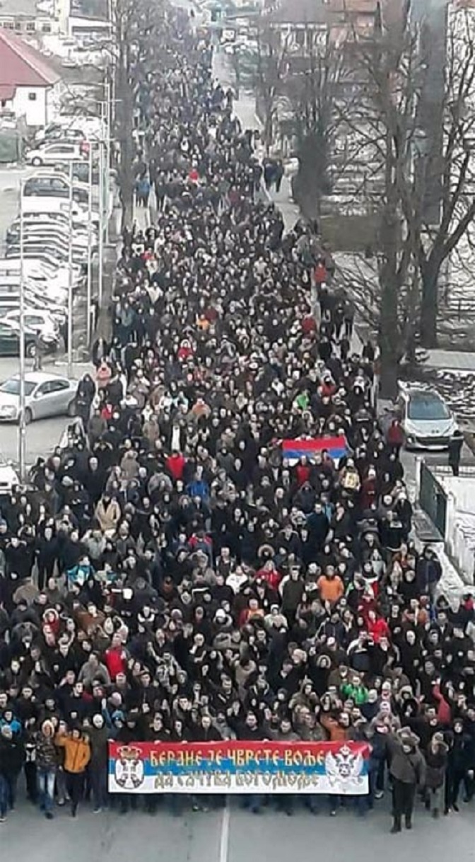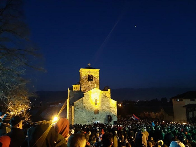 Његове ријечи окупљени народ поздравио је срдачним аплаузом и узвицима: Не дамо светиње.