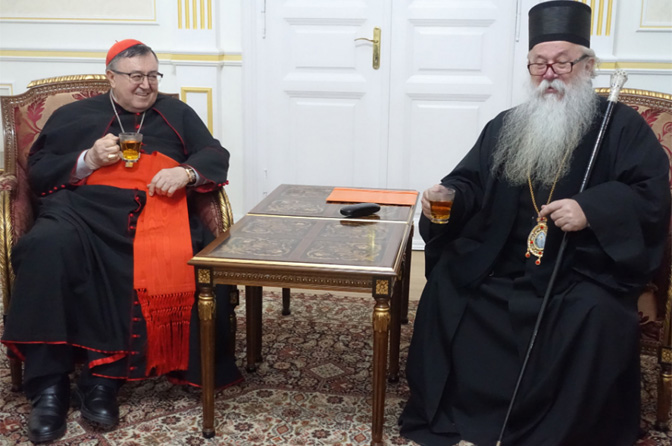 „Možda smo ponekad zarobljenici prošlosti. Ali zadaća nam je da budemo Božji, a onda braće naše. Neka nam Gospodin dadne snage da zaista budemo svjedoci Božji slobodno u ovome svijetu“, kazao je mitropolit Hrizostom dodajući da to svjedočenje, slobode i želje da budu jedno ne treba biti silom nego životom. Zapitavši, kada će se ostvariti to jedinstvo, odgovorio je: „Ne znam kada će to biti, ali nužno je da to tražimo u ime Kristovo, da izliječimo svoje rane, procijepe i rascijepe da sjedinimo Crkvu Božju“, kazao je mitropolit Hrizostom koji je pozvao da svi zajedno rade na jedinstvu. Osvrćući se na podatke o progonjenim kršćanima u svijetu, mitropolit Hrizostom kazao je da se ti progoni događaju možda i zbog neinformiranosti o onom što kršćani vjeruju ili zbog zadojenosti i mržnje prema onima koji vjeruju u Krista Gospodina te istaknuo da su kršćani pozvani svjedočiti da u svijetu ima mjesta za dobro, za ljubav i za malog čovjeka te da su pozvani nadvladavati međusobne podjele u skladu s Isusovom molitvom „da svi budu jedno. Kao što si ti, Oče, u meni, i ja u tebi” (Iv 17,21). Na kraju je srdačno zahvalio kardinalu Puljiću za njegovo zauzimanje na planu kršćanskog zajedništva.
