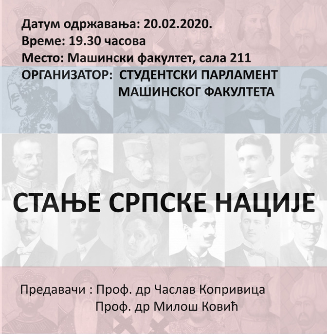 На предавању ће говорити професори Часлав Копривица и Милош Ковић, а одржава се на Машинском факултету 20. фебруара у 19:30 часова